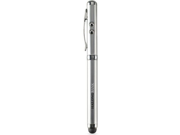 Descubre un instrumento de escritura que combina cuatro funciones esenciales en un diseño elegante de aluminio plateado mate. Este bolígrafo integra escritura tradicional, luz LED blanca, puntero láser rojo y puntero para pantallas táctiles, convirtiéndose en la herramienta perfecta para profesionales que buscan versatilidad sin comprometer la elegancia. Su construcción en aluminio de 58 gramos garantiza durabilidad y presencia durante presentaciones ejecutivas.