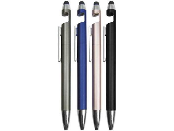 Descubre la funcionalidad que revoluciona tu escritorio con este bolígrafo multitarea de plástico metalizado. Su diseño innovador integra un soporte específico para dispositivos móviles, transformando cualquier superficie en tu estación de trabajo ideal. Con 14,5 cm de longitud y apenas 9 gramos de peso, ofrece comodidad prolongada mientras mantiene tu smartphone o tablet siempre visible.