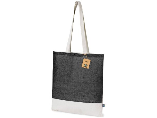 La bolsa Annet va más allá de ser un simple accesorio de compras. Fabricada en algodón 100% de 140g/m² con certificación Fairtrade, representa un compromiso auténtico con el comercio justo y la responsabilidad social. Sus dimensiones de 37x41cm y asas largas reforzadas la convierten en la compañera ideal para el día a día, mientras que su acabado en tono natural con opciones en negro transmite elegancia sostenible.