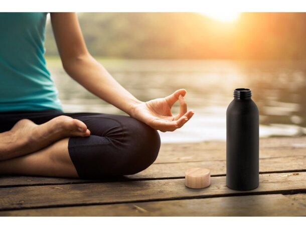 Botella Queta de aluminio mate con tapa bambú 550 ml BPA Free