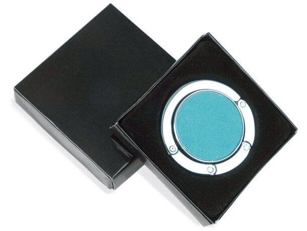 Disponible en seis colores vibrantes: azul, naranja, negro, rojo, rosa y blanco, cada cuelgabolsos viene presentado en un elegante estuche individual con interior troquelado, perfecto para regalo o uso personal.