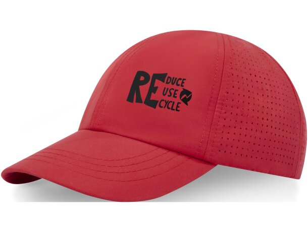 La gorra Mica combina diseño deportivo con compromiso medioambiental gracias a su microfibra 100% poliéster reciclado certificado GRS. Sus 6 paneles con tecnología Cool Fit incluyen perforaciones láser en la zona trasera que garantizan ventilación superior durante actividades deportivas o uso prolongado.