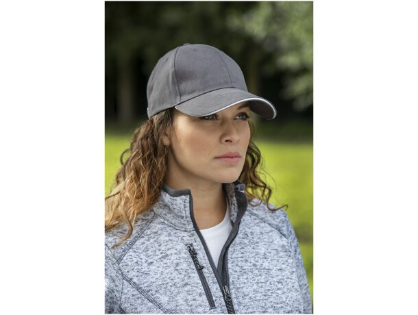 Esta gorra ofrece múltiples áreas de marcaje: frontal (ideal para logotipos principales), visera (perfecta para mensajes secundarios), zona posterior, correa ajustable y paneles laterales. Cada posición permite diferentes dimensiones de personalización, adaptándose a diversos tipos de diseños.