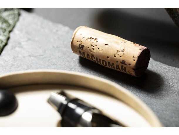 Leer MásConjunto de accesorios para vino en estuche circular de corcho con sacacorchos, tapón, dosificador y recogegotas de acero inoxidable. Solución premium para merchandising corporativo y eventos promocionales.