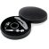 La superficie circular del estuche permite un área de impresión óptima sobre la tapa de polipiel negra. Las dimensiones del marcaje se adaptan al diámetro de 15 cm, ofreciendo espacio suficiente para logotipos corporativos o mensajes personalizados.