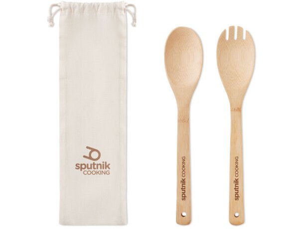 Set cubiertos ensalada Mayen bambú sostenible bolsa algodón
