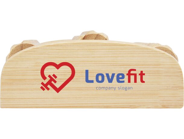 - Grabado láser: Técnica que aprovecha el contraste natural del bambú, creando marcajes permanentes y elegantes con acabado premium