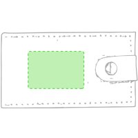 El área de marcaje se sitúa en la parte frontal de la funda, con unas dimensiones máximas de 4,5 x 3 cm, perfectamente visible cuando el set está cerrado. Esta posición estratégica garantiza que tu marca o diseño luzca de forma prominente en este práctico accesorio.