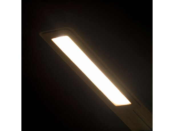 Leer MásSleya: lámpara plegable de bambú con 25 LEDs regulables en tres intensidades lumínicas, cargador inalámbrico 10W y salida USB. Solución sostenible perfecta para publicidad en espacios de trabajo.