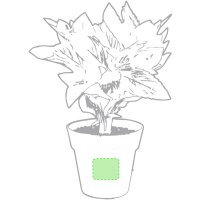 La superficie de impresión se sitúa en el lateral del macetero, con un área máxima de 2.2 x 2.5 cm y tamaño por defecto de 2 x 3 cm. Esta zona permite aplicar logos, textos o diseños simples que mantengan la estética natural del producto.