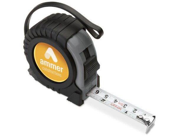 La técnica de tampografía permite personalizar un área de 30x30mm con 1 color, perfecta para marcas sencillas y textos corporativos. Ambas opciones se sitúan en el cuerpo principal para máxima visibilidad durante el uso profesional de estos metros.