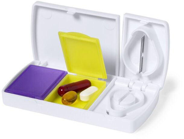 Pastillero Aspi blanco con cuchilla y compartimentos separados