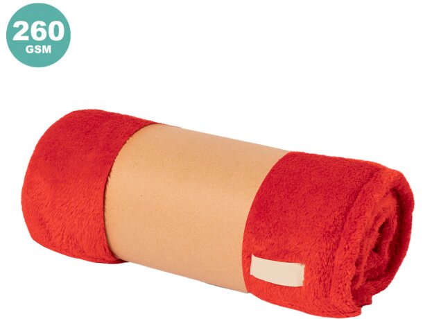 La manta Durmok combina el confort del coral fleece de 260 g/m² con un tratamiento anti-pilling que preserva su suavidad original lavado tras lavado. Con sus 130 x 160 cm y apenas 560 gramos de peso, ofrece calidez sin volumen, ideal para regalos corporativos que transmiten cuidado y calidad. Su parche cosido específico para marcaje garantiza durabilidad en la personalización, mientras que la funda de cartón reciclado facilita el branding del packaging.