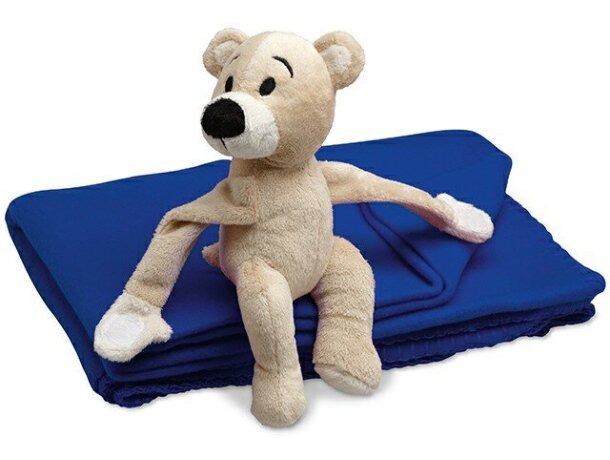 Leer MásManta polar con peluche osito adherible por velcro, perfecta para regalar en acciones dirigidas a familias. Tejido suave que ofrece calidez como regalo publicitario funcional para niños.