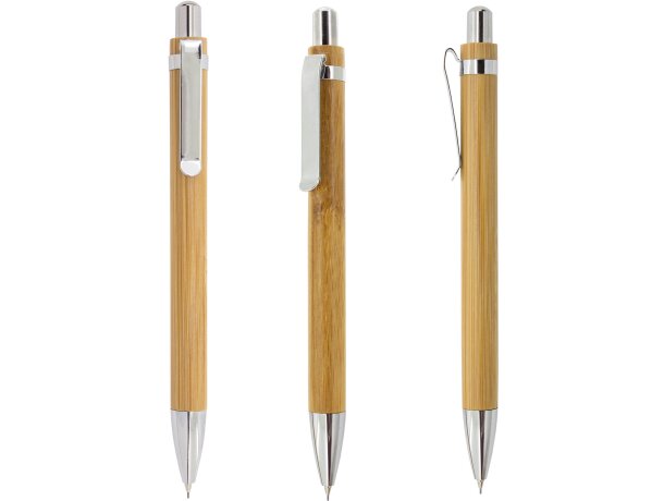 Portaminas Hela bambú natural mecanismo clic y clip metálico