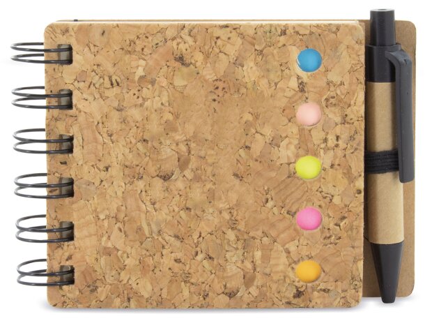 Esta libreta de corcho natural combina funcionalidad y respeto ambiental en un formato compacto de 8,2 x 8,5 cm. Con sus 70 hojas lisas de 70g y cinco marcadores de papel integrados, facilita la clasificación por colores de tus notas y proyectos. Su textura orgánica del corcho ofrece un tacto distintivo mientras contribuyes al cuidado del planeta con materiales renovables.
