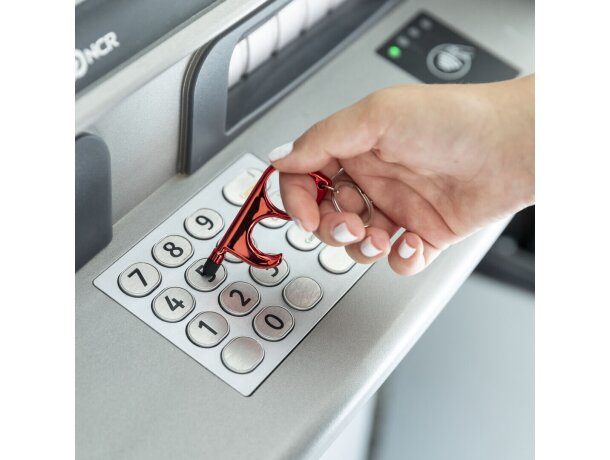 Cada unidad se presenta en bolsa individual de diseño que protege el acabado metalizado hasta su entrega. Garantizamos la funcionalidad completa del bolígrafo integrado, puntero táctil y troquel ergonómico, asegurando que estos llaveros originales cumplan su propósito higiénico desde el primer uso.