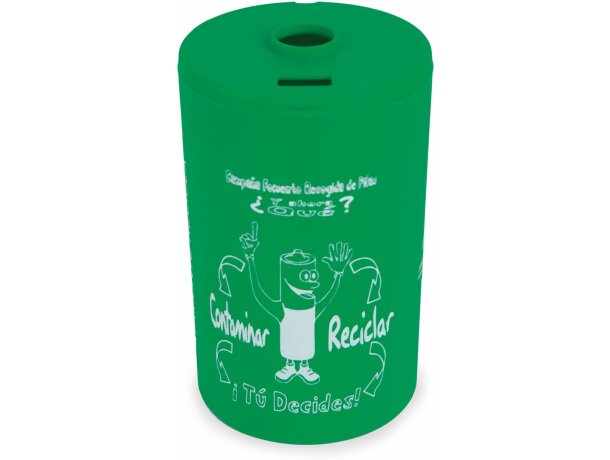 Cubierto PP verde reciclaje pilas con logo para empresa ecológica