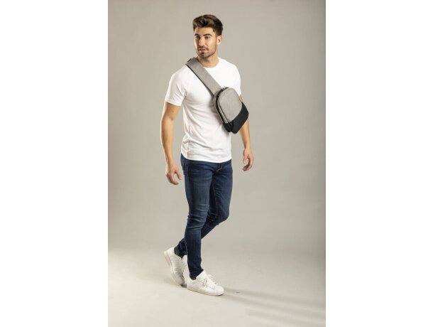 La bandolera ofrece un área de impresión estratégicamente ubicada en la zona frontal superior de 8 x 6 cm, perfecta para logotipos corporativos, nombres de empresa o diseños promocionales. Esta posición garantiza máxima visibilidad sin comprometer la funcionalidad de los bolsillos.