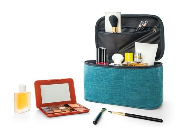 El neceser Eliza destaca por su doble sistema de cierre con cremalleras que garantiza máxima seguridad para tus productos de cuidado personal. Fabricado en poliéster 300D de alta densidad con interior completamente forrado, ofrece resistencia excepcional y protección total del contenido.