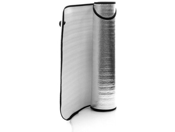 El parasol Fussion combina aluminio metalizado plateado con ribetes de poliéster en colores vibrantes, ofreciendo una protección solar eficaz que mantiene fresco el interior de tu vehículo. Con apenas 55 gramos de peso y dimensiones de 130 x 60 cm, este accesorio para coche incorpora espuma aislante en el reverso que maximiza la barrera térmica. Su sistema de fijación mediante ventosas con argollas metálicas de refuerzo garantiza una sujeción segura en la luna delantera.