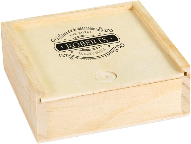 Con sus 64 gramos de peso e incluye fichas de madera para dos jugadores, ofrece diversión portátil donde quiera que vayas. Su presentación en caja del mismo material natural lo convierte en un regalo corporativo elegante y memorable.