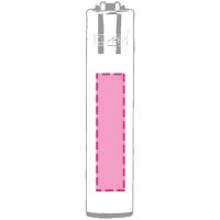 El área de marcaje se ubica en la superficie frontal del mechero, ofreciendo un espacio de 40x12 mm perfectamente dimensionado para logotipos corporativos y mensajes promocionales. Esta zona garantiza máxima visibilidad cada vez que el usuario manipule el producto.