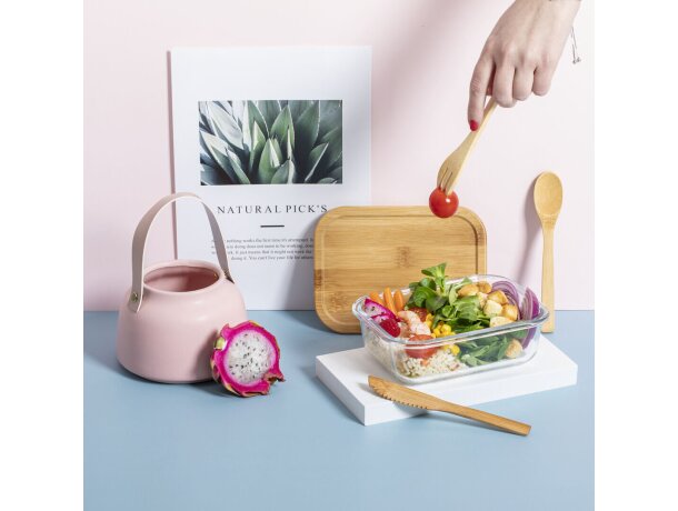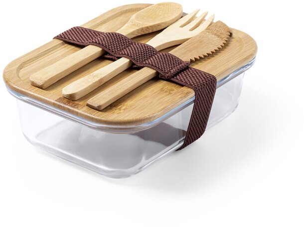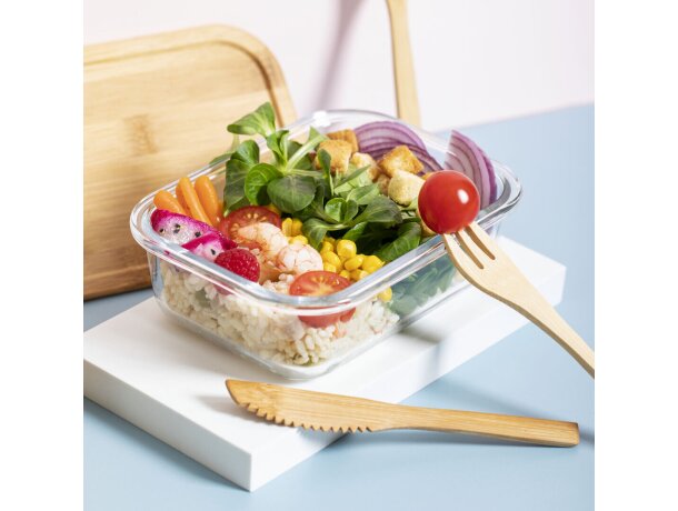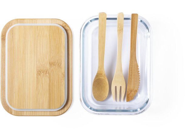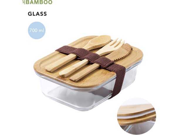 Fiambrera Bejar cristal 700ml tapa bambú con cubiertos