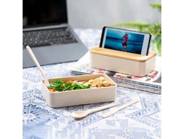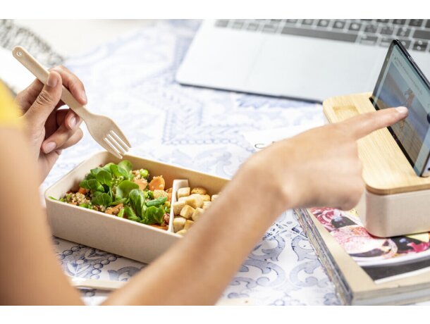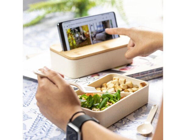 Fiambrera Graftan bambú libre BPA con soporte para móvil