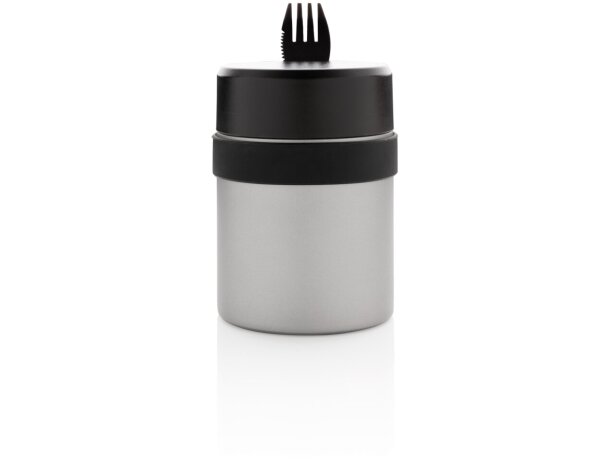 • Fiambrera con logo Bogota cerámica térmica 400ml cubiertos Plata/negro detalle 3