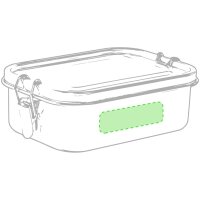 Para personalizar tu fiambrera Yalac tienes disponibles múltiples zonas de marcaje: laterales A y B con área de 6 x 2 cm, perfectos para logos corporativos o mensajes cortos. La tapa central ofrece un espacio de grabado de 7.5 x 4 cm, ideal para diseños más elaborados o información de contacto.