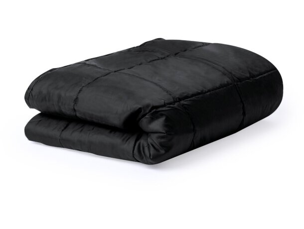 La manta ofrece múltiples zonas para personalizarla según tus necesidades. Las áreas de impresión principales se localizan en las esquinas y centro de la superficie, permitiendo logotipos desde pequeños hasta medianos formatos. El tamaño máximo recomendado para el marcaje central es de 20 x 20 cm, mientras que las esquinas admiten diseños de hasta 10 x 10 cm.