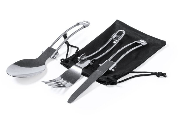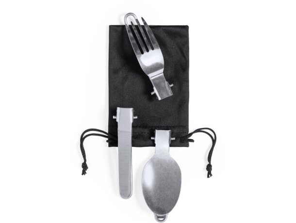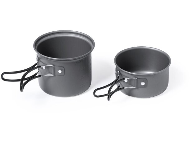 Set menaje camping Sondic publicitaria con ollas y cubiertos plegables