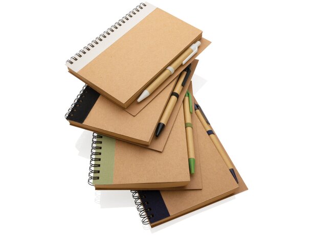 Cuaderno espiral kraft reciclado 140 hojas con bolígrafo incluido