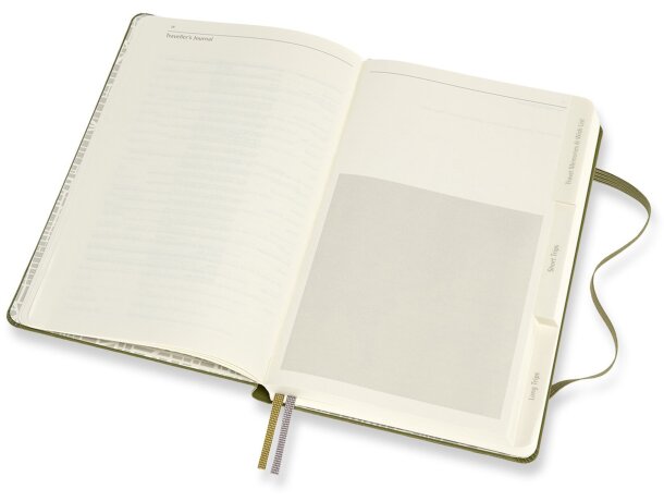 La libreta con banda elástica Passion Journal combina elegancia profesional con funcionalidad práctica en formato A5 (14,8 x 21 cm). Su tapa dura con acabado símil piel texturizado ofrece resistencia y distinción, mientras que las 96 hojas de papel rayado (192 páginas) proporcionan amplio espacio para notas y planificación. El marcapáginas integrado tipo cinta y la banda elástica de cierre garantizan organización y protección del contenido.