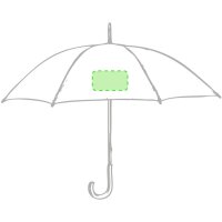 El paraguas Santy ofrece dos zonas estratégicas de personalización que maximizan la visibilidad de tu marca. El área principal se encuentra en el panel del paraguas con unas dimensiones de 18 x 10 cm, ideal para logotipos corporativos, mensajes promocionales o diseños creativos de gran impacto visual.