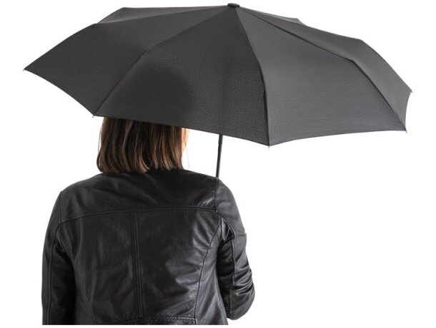 El paraguas plegable River representa la perfecta fusión entre sostenibilidad y funcionalidad avanzada. Fabricado con tejido pongee rPET 190T procedente de materiales reciclados, este paraguas demuestra que protegerse de la lluvia puede ser una decisión responsable con el planeta. Su sistema automático de apertura y cierre garantiza comodidad inmediata, mientras que las varillas de fibra de vidrio ofrecen excepcional resistencia al viento sin comprometer la portabilidad.
