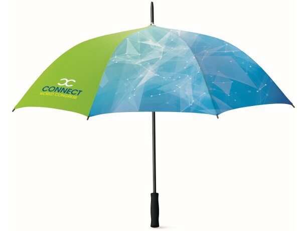 Los paneles de la sombrilla ofrecen amplias superficies para personalizarlo con tu marca, con 122 cm de diámetro total cuando está desplegado. Cada panel proporciona espacio generoso para logos, textos o diseños complejos que maximizan la visibilidad de tu mensaje.