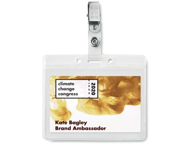 Porta credenciales Clipbadge PVC transparente clip metálico