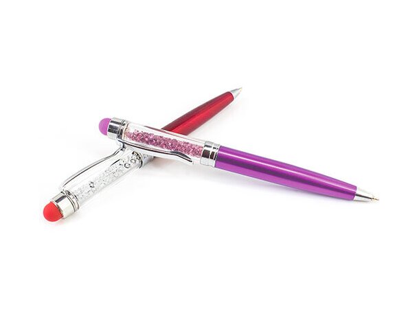 - Boligrafo Diamonds touch, original y elegante bolígrafo con sistema giratorio, decorado con cristales strass en su interior.