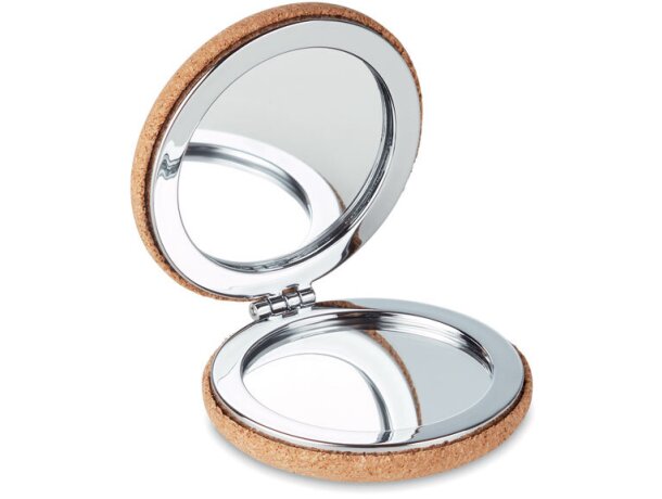 - Espejo doble circular con acabado en corcho.