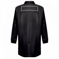 Las batas de trabajo Minsk ofrecen dos áreas estratégicas de marcaje: el pecho con un área máxima de 100x100mm, ideal para logos corporativos discretos, y la espalda con 280x70mm, perfecta para nombres de empresa o mensajes más extensos.