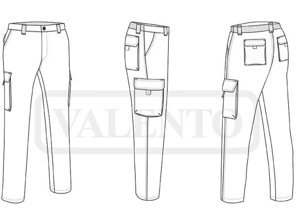 Para personalizar estos pantalones profesionales, disponemos de un área de marcaje estándar de 9,5 x 14 cm, perfecta para logotipos corporativos y nombres de empresa. Las zonas más habituales para la aplicación incluyen el muslo derecho o izquierdo, donde la visibilidad del diseño es óptima sin comprometer la funcionalidad de los bolsillos.