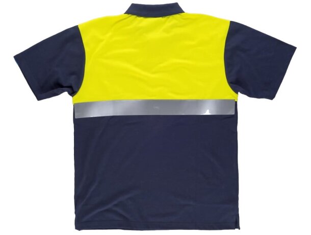 El diseño incluye cinta reflectante en pecho y espalda, garantizando máxima visibilidad en condiciones de poca luz. Su cuello clásico sin botones con punto canalé y cubrecosturas interior aportan durabilidad excepcional para uso profesional intensivo.