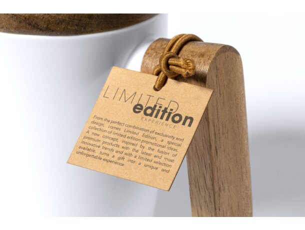 La taza Haruncal Limited Edition fusiona cerámica blanca con detalles de madera natural, creando una pieza única que combina elegancia moderna con calidez tradicional. Con una capacidad de 350 ml y un peso de 380 gramos, esta taza premium incluye un exclusivo estuche de presentación protegido por derechos de propiedad industrial. Su diseño de 11 cm de alto y 8.5 cm de diámetro la convierte en el regalo corporativo perfecto para profesionales que buscan artículos distintivos.