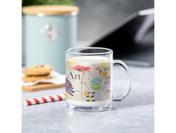 Leer MásTaza cristal transparente Brant 350 ml con asa integrada, apta para sublimación en superficie de 16.5 x 6 cm. Presentada en caja kraft, resulta un detalle distinguido para cualquier empresa.