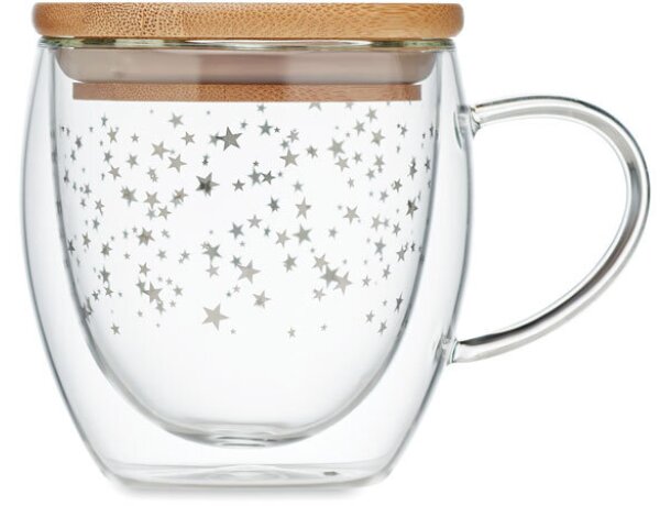 Taza cristal Sion doble pared térmica 220ml tapa bambú natural