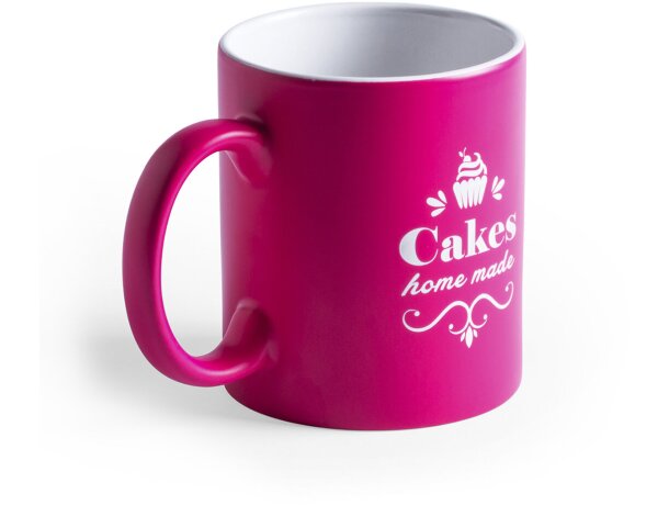 La taza Lousa destaca por su capacidad de 350ml y su innovador acabado exterior que permite crear efectos visuales únicos mediante grabación láser. Su cerámica de alta calidad garantiza durabilidad y resistencia, mientras que el interior blanco contrasta perfectamente con los colores exteriores disponibles: naranja, amarillo, azul, fucsia, negro, rojo y verde.