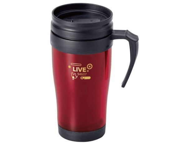 Leer MásTaza viaje con asa ergonómica y tapa aislante térmico, transporta bebidas calientes en desplazamientos. Zona disponible para logo personalizados mediante tampografía en publicidad.