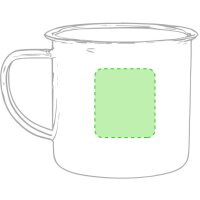 Esta taza ofrece tres zonas diferentes para personalizarla según tus necesidades: el área principal de 200x45 mm en 360º permite diseños panorámicos completos, mientras que la cara frontal admite marcajes de 60x45 mm para logos más compactos. Las dimensiones de 7.9 cm de alto por 8.8 cm de diámetro proporcionan un lienzo perfecto para cualquier tipo de personalización creativa.